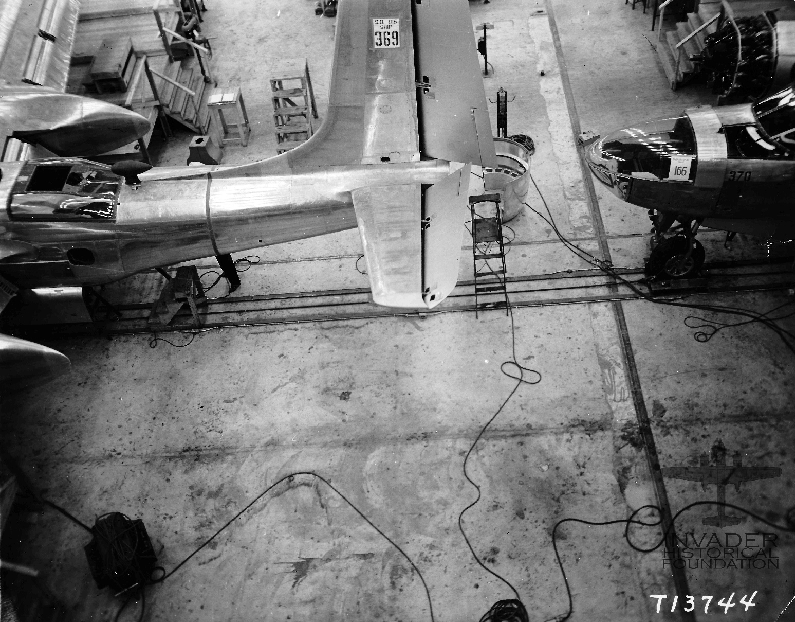 (This photo shows the nose of 43-22620 and the tail end of 43-22619 while under construction at Douglas Tulsa.) |