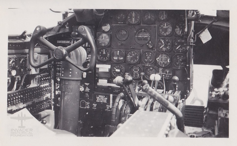 This photo shows an A-26C cockpit with the crawlspace into the bombardier's nose visible on the right side. Photo from Boeing.