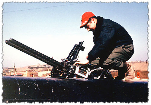 Here a 13th Bomb Squadron Gunner, Freddie Carroll, inspects the upper turret on an Invader in Korea.