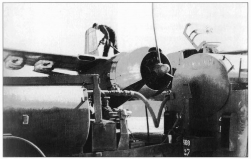 The ammo for the underwing gun pods was stored in an ammo box inside of the wing. This photo shows two ground crew members of the 319th Bombardment Group loading the internal magazine for the underwing gun pods.