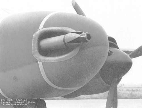 Here is the 75mm cannon on the XA-26B prototype Invader. This prototype has features that did not make it into the production version, such as the flashing around the barrel.