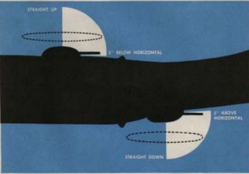 In addition to the nose armament, two .50 caliber machine guns were held in a dorsal turret, and two more .50 caliber guns in the ventral turret. These turrets had an excellent range of motion. Each one could rotate 360 degrees, could depress 5 degrees, and could raise a full 90 degrees. Between both of the turrets the plane could protect itself from an attack in any direction.