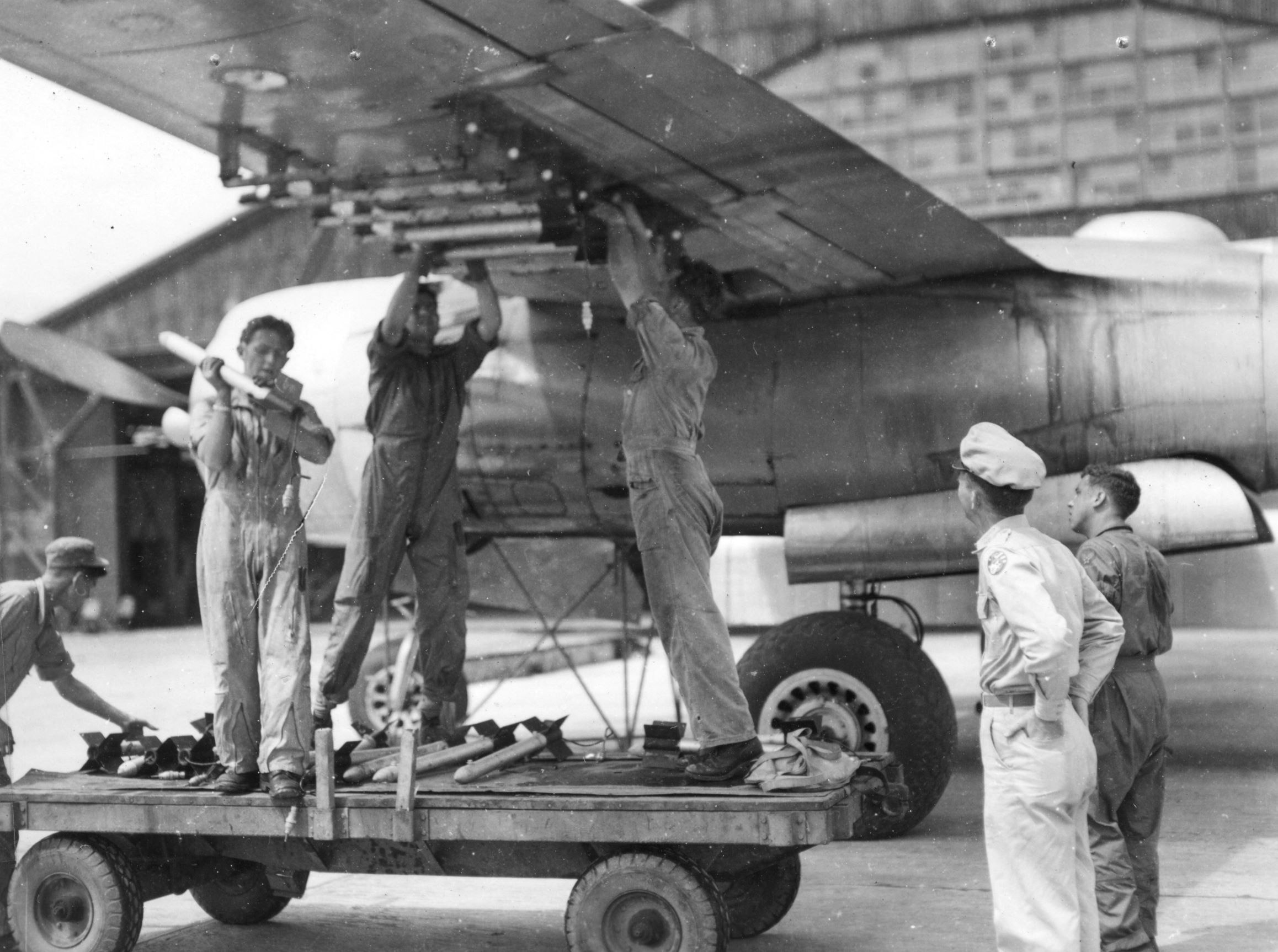 | 04:11, 7 September 2018 | Jul48 YAB 13BS Loading Rockets 2.jpg (file) | 338 KB | WikiSysop | A 13th Bomb Squadron plane (Tail Letter W) being fitted with Rockets before a mission at Yokota Air Base, Japan, July 1948. Photo by Don Cooper. | 1 | |