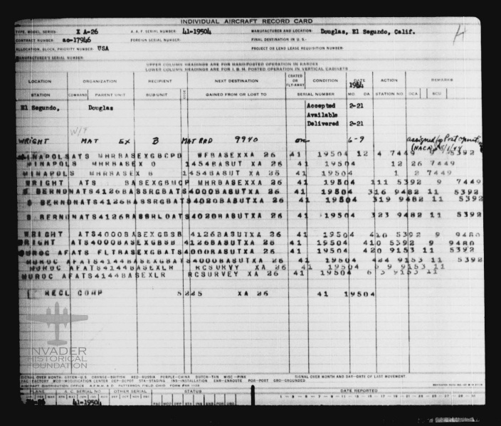 The Individual Aircraft Record Card for 41-19504. From USAFHRA.