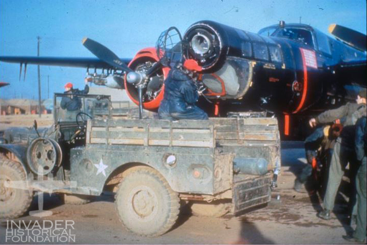 This photo shows a crewman working on the classified Infrared equipment in the experimental nose of 41-39401 while she was a Pathfinder Variant assigned to the 13th Bombardment Squadron, 3rd Bombardment Group. NARA