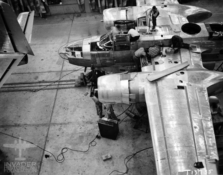 This photo shows the front section of 43-22622 and the tail section of 43-22621 while under construction at Douglas Tulsa.