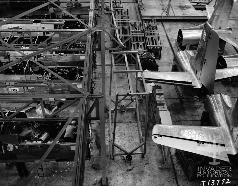 The tails of 397 (43-22648) (top) and 398 (43-22649) (bottom) at the Douglas Tulsa factory.
