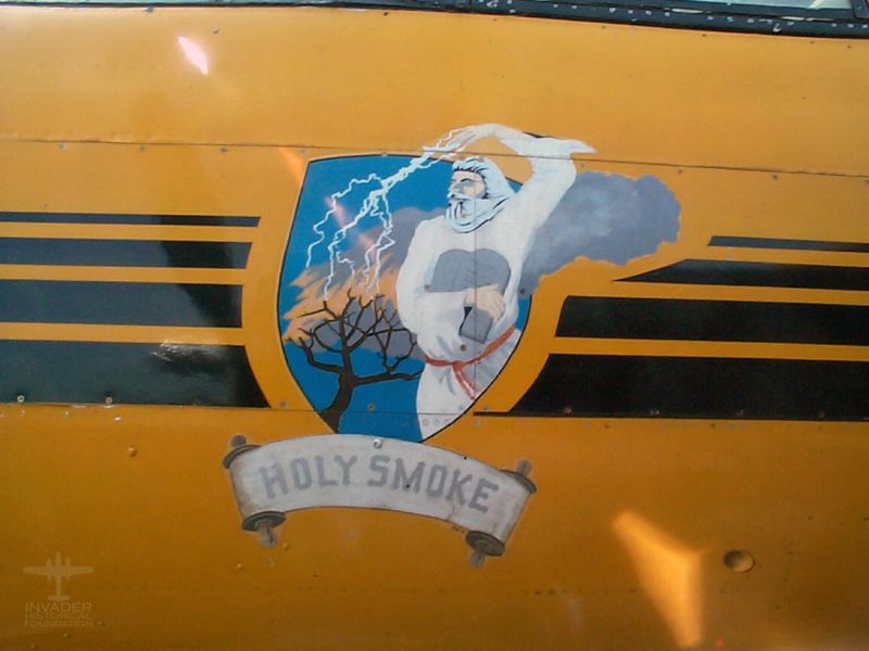 A close-up of the nose art on Air Spray Tanker #2, 44-35898. Image Credit Unknown.